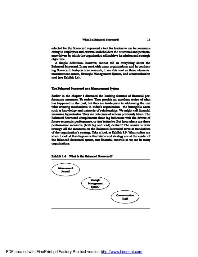 Creating an Excel-Based Balanced Scorecard Balanced Scorecard teaches them where to fish.”(Kaplan and Norton, 2006 p. 282). Army uses an overall mission of preparedness of forces as the highest step in the Balanced Scorecard with stakeholder needs just below it. Figure 1.1 shows this ... Get Document