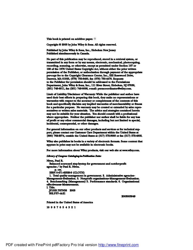 Later, in early 2003, Balanced Scorecard Step - by- Step for Government and Nonprofit Agencies was released. I have been amazed and very humbled at the success of the First Edition , which has been translated widely and used by ... Visit Document