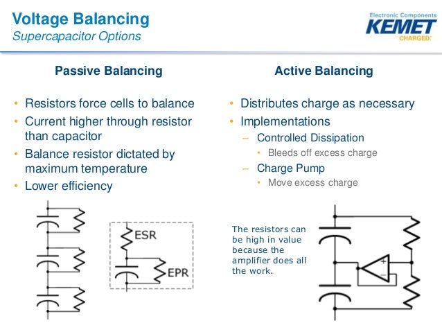 Application Guidelines failure mode for a supercapacitor is an increase in equivalent series resistance (ESR) and/or a decrease in capacitance. Active voltage balancing circuits force the voltage at the nodes of series connected supercapacitors to be the same as a fixed ref- ... Access Doc